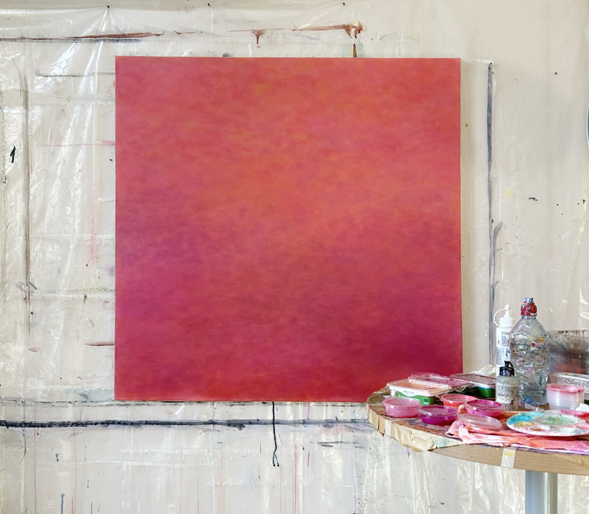 Jedes meiner Bilder hat seinen eigenen Entstehungsweg: Es ist ein Tasten, Finden, Verwerfen. Ratlos davor stehen, zweifeln, vertrauen. Ein Abenteuer. Ein Wechselbad der Gefühle – in Farbe. Meine Bilder entstehen in unzähligen transparenten Acryl Farbschichten, verdichten sich langsam und nehmen Kontur an; bis sie endlich verraten, wohin sie am Ende wollen. Jede Farbe, die das Bild gerade braucht, mische ich nach meinem Gefühl. Fast nie verwende ich sie so, wie sie aus der Tube kommt.